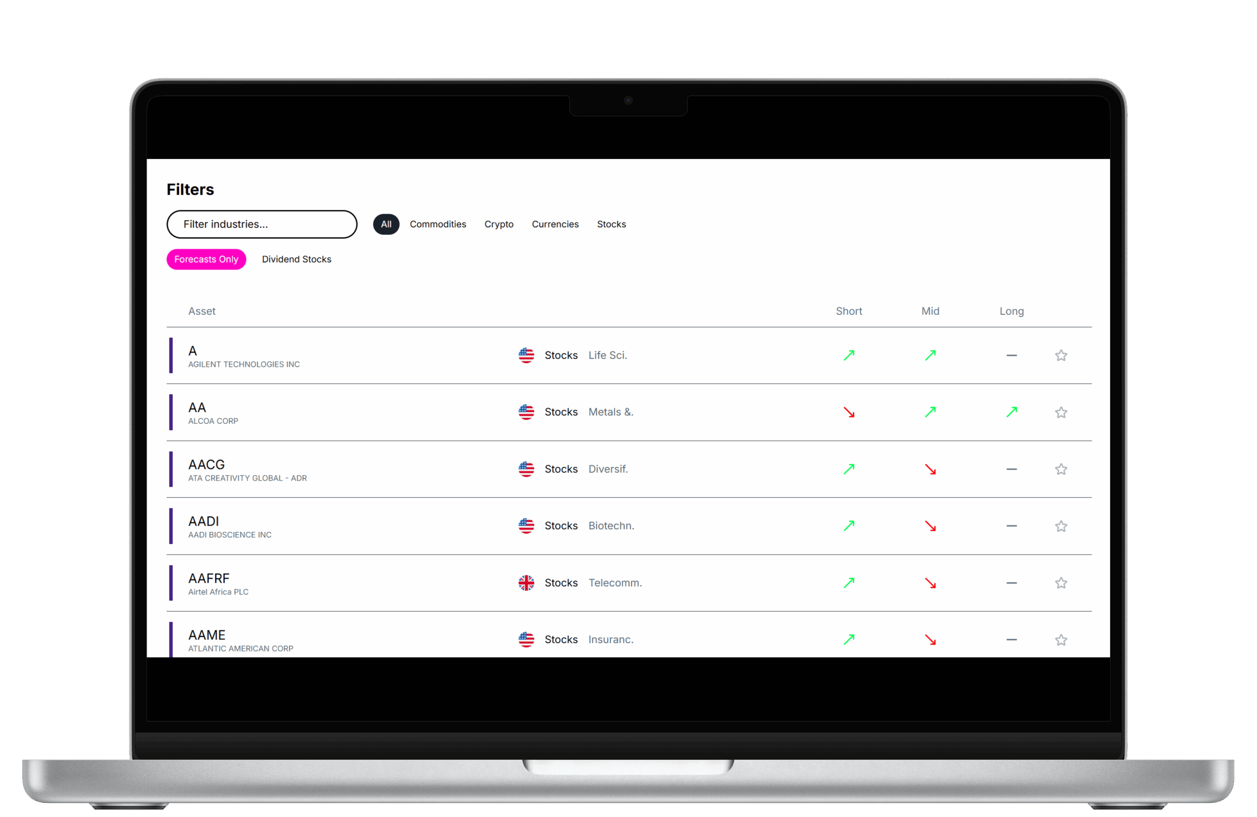 GoatX nutzt etablierte Kennzahlen und proprietäre Modelle, um Ihnen eine differenzierte Risikobewertung für über 5.000 Aktien, Rohstoffe und Krypto-Assets zu liefern.